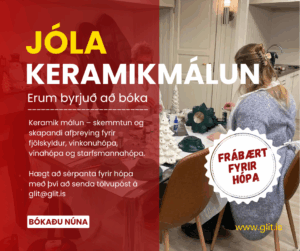 vinahópa og starfsmannahópa. Komdu og upplifðu skapandi ogskemmtilega stund.