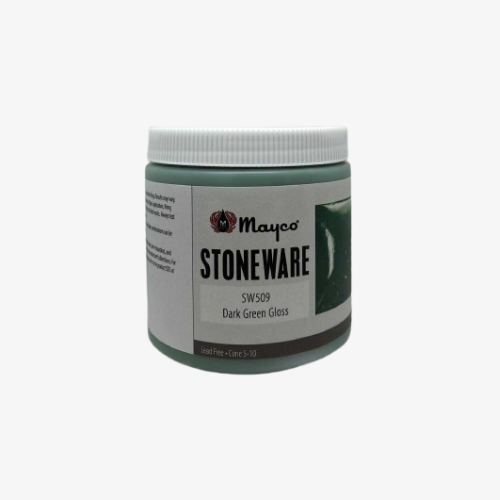 Cone 6: Dark Green Gloss is a highly-pigmented emerald green gloss glaze. The stable qualities of this glaze make it ideal for